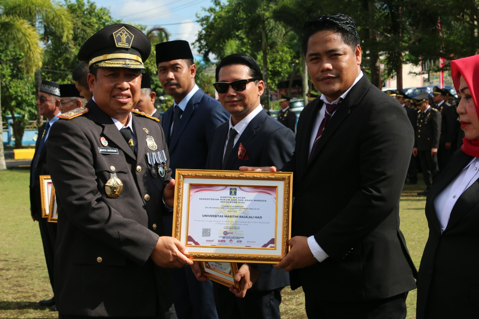 TANJUNGPINANG — Universitas Maritim Raja Ali Haji (UMRAH) kembali mencatatkan prestasi membanggakan dengan meraih penghargaan sebagai Sentra Hak Kekayaan Intelektual (HKI) Perguruan Tinggi dengan jumlah pendaftaran Hak Cipta terbanyak se-Kepulauan Riau. Penghargaan tersebut diserahkan langsung kepada Kepala Lembaga Penelitian dan Pengabdian kepada Masyarakat (LPPM) UMRAH, Wahyudin, S.Pi., M.Si., Ph.D., di halaman Kantor Wilayah Kementerian Hukum dan HAM (Kanwil Kemenkumham) Kepulauan Riau pada Senin (19/8/2024).